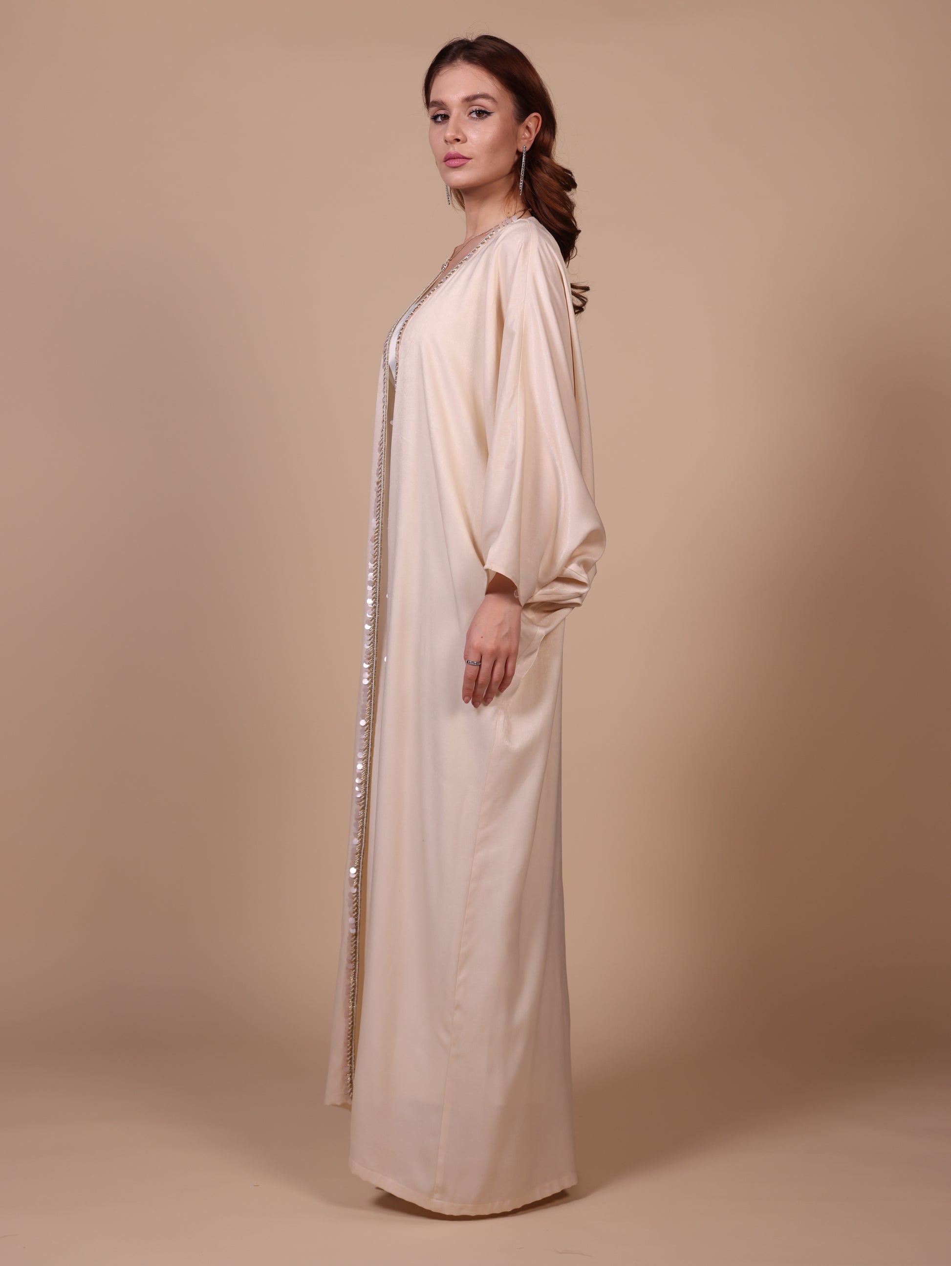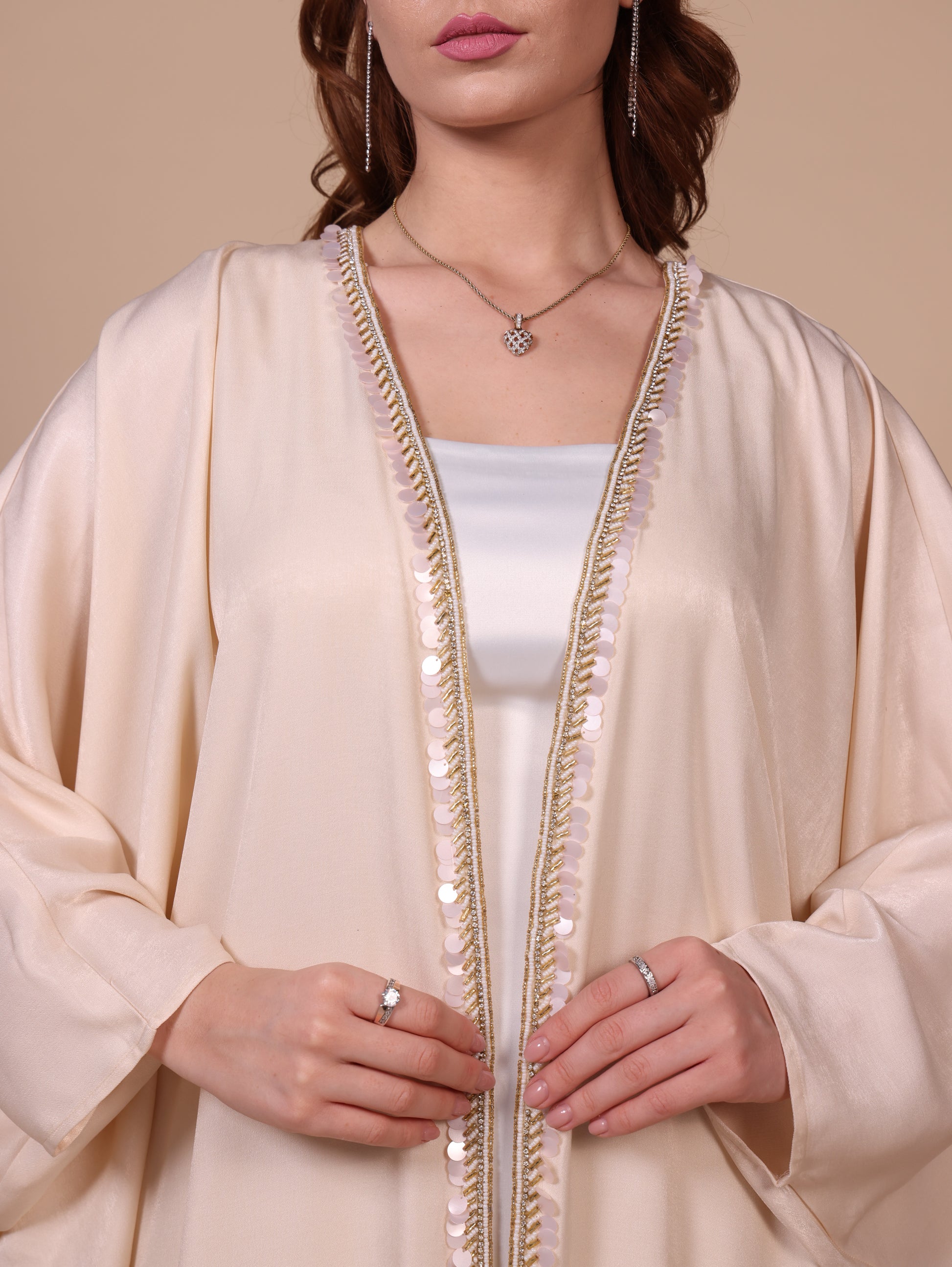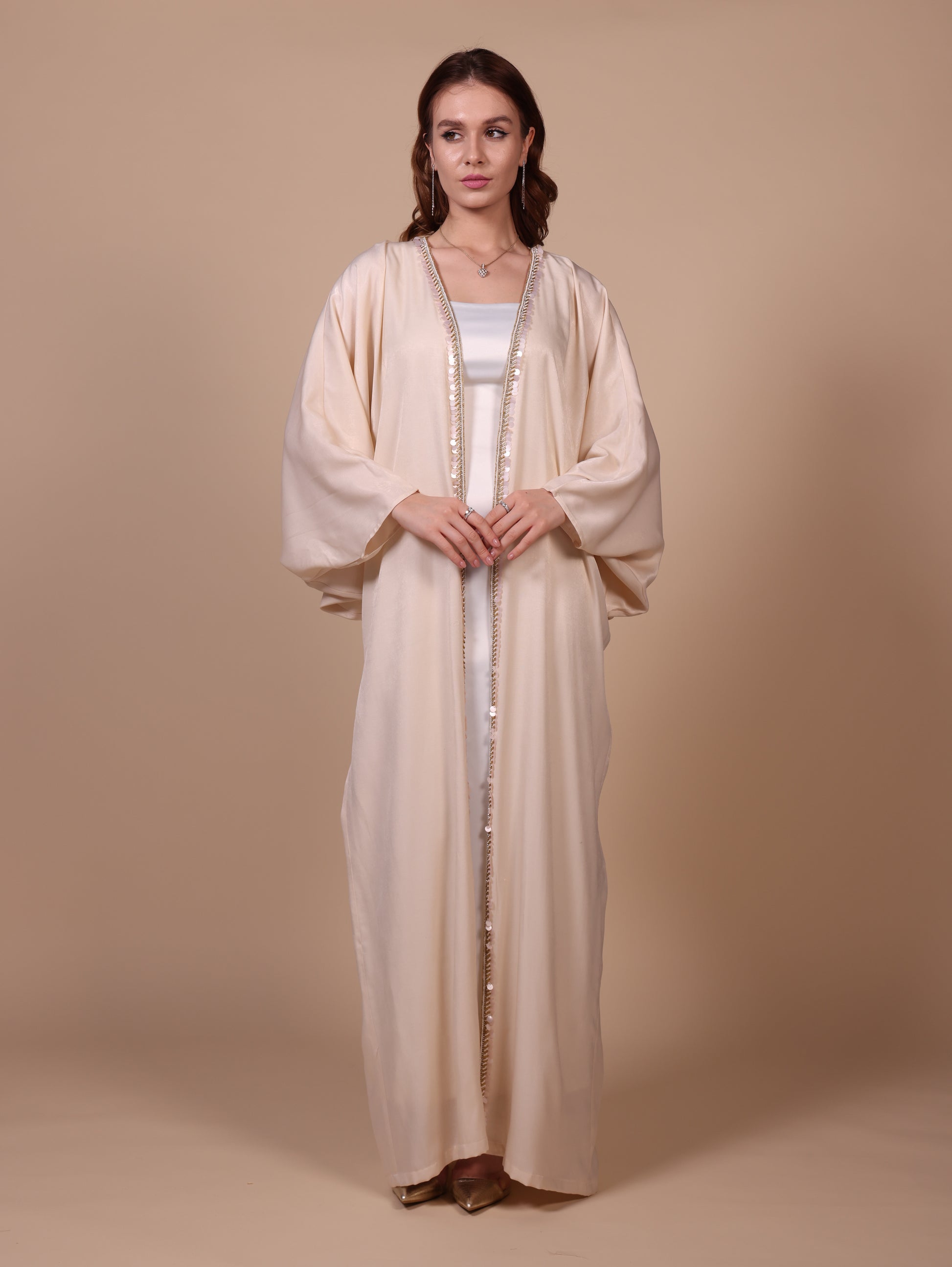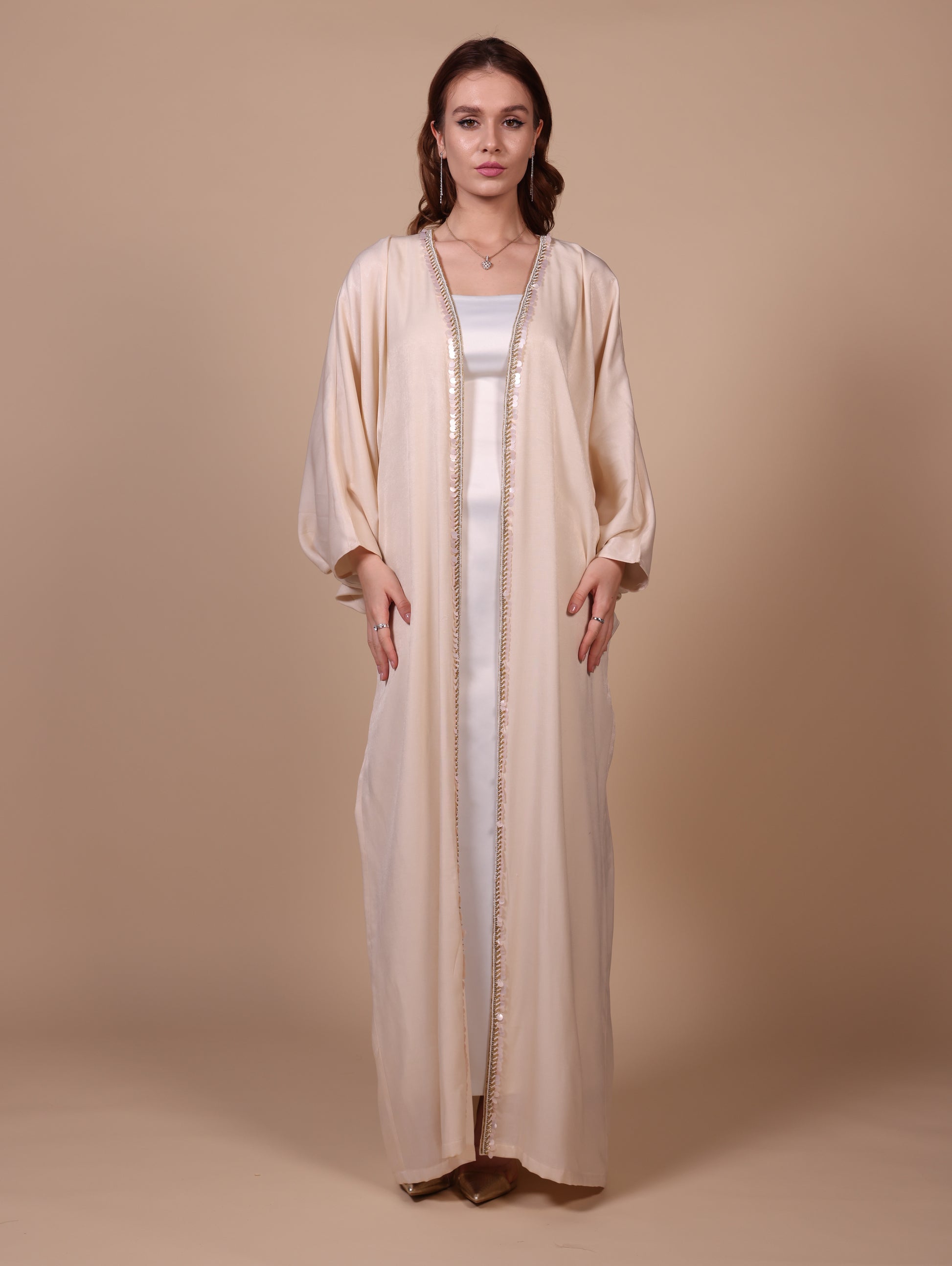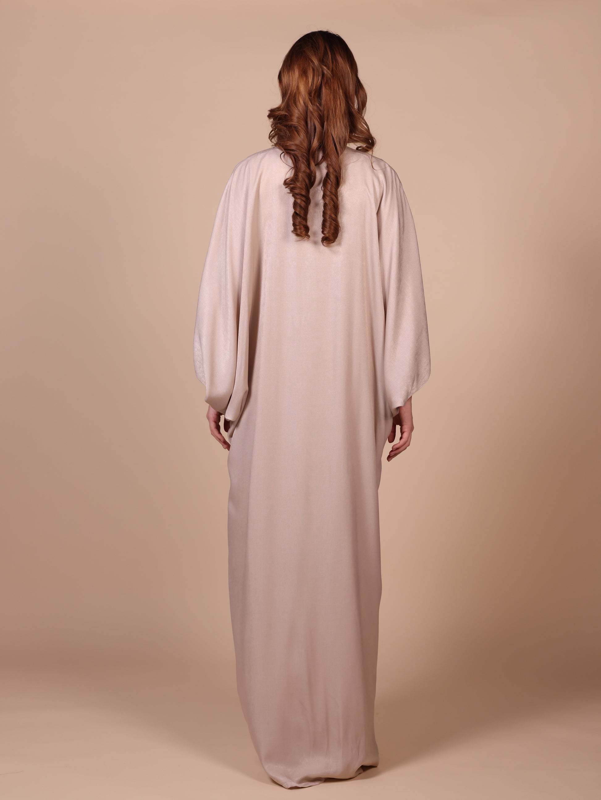Silk Denim Abbaya with handwork details, length 60inches, Handwork details