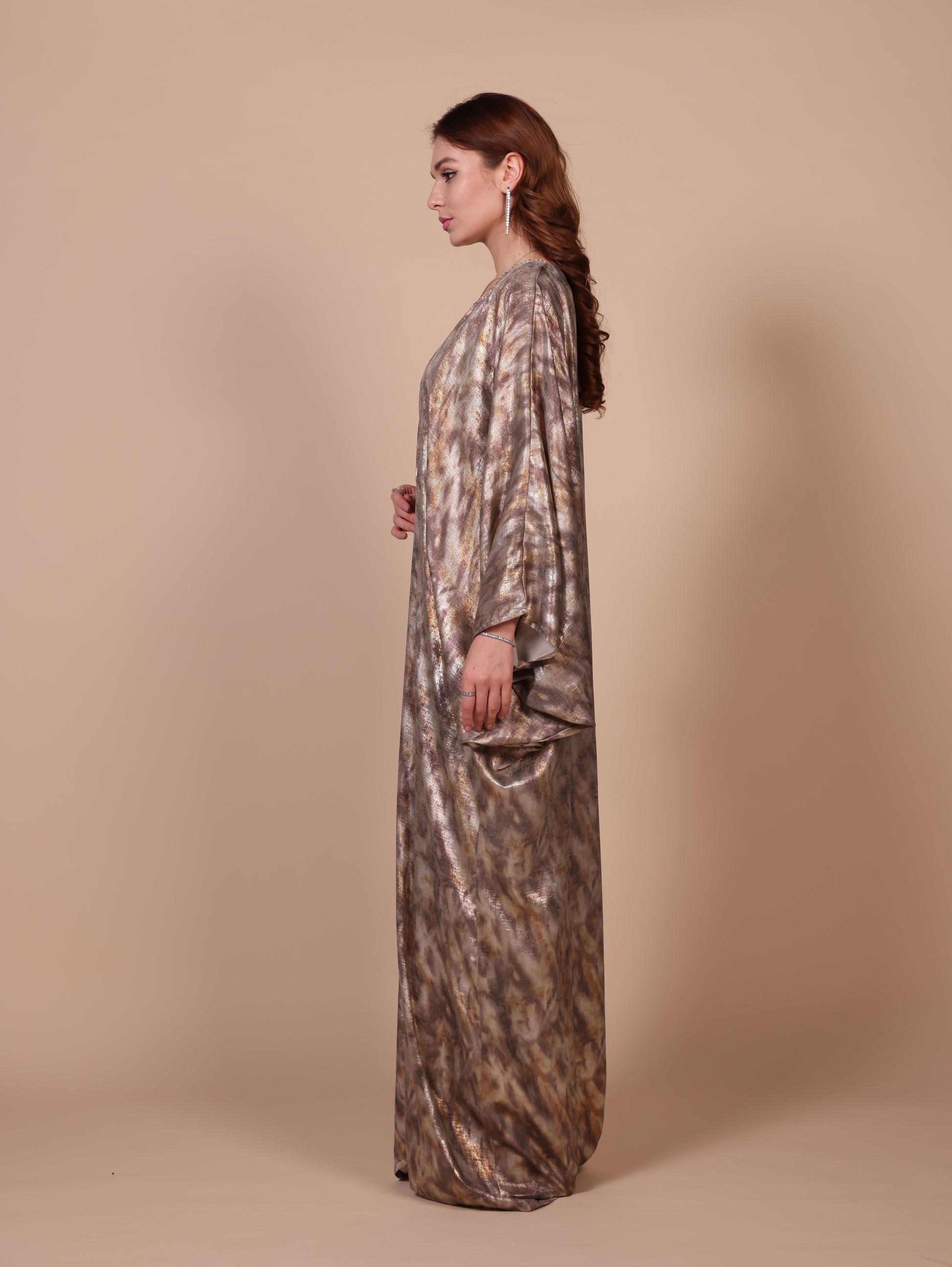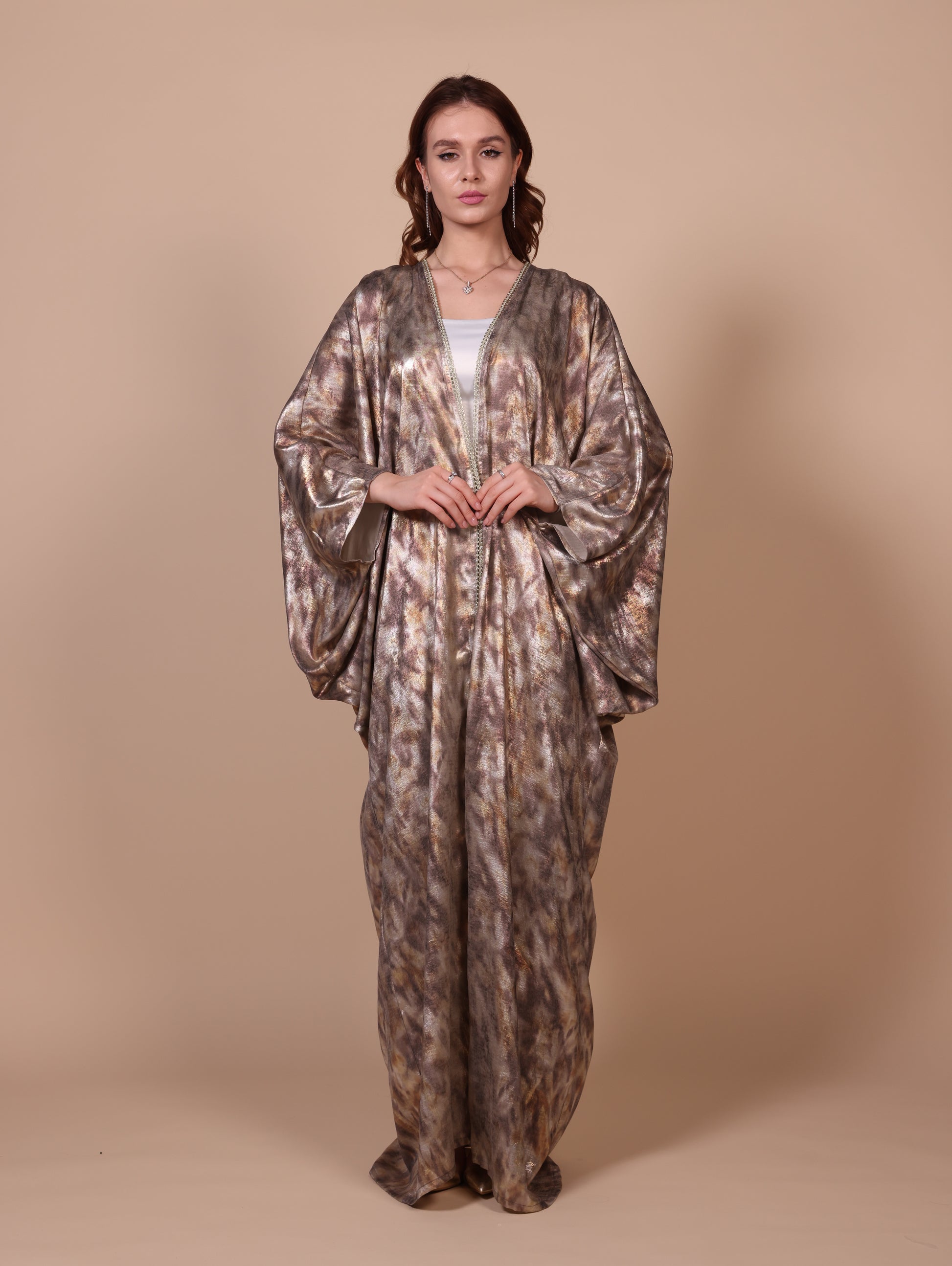 Shiny Foil print crepe Abbaya