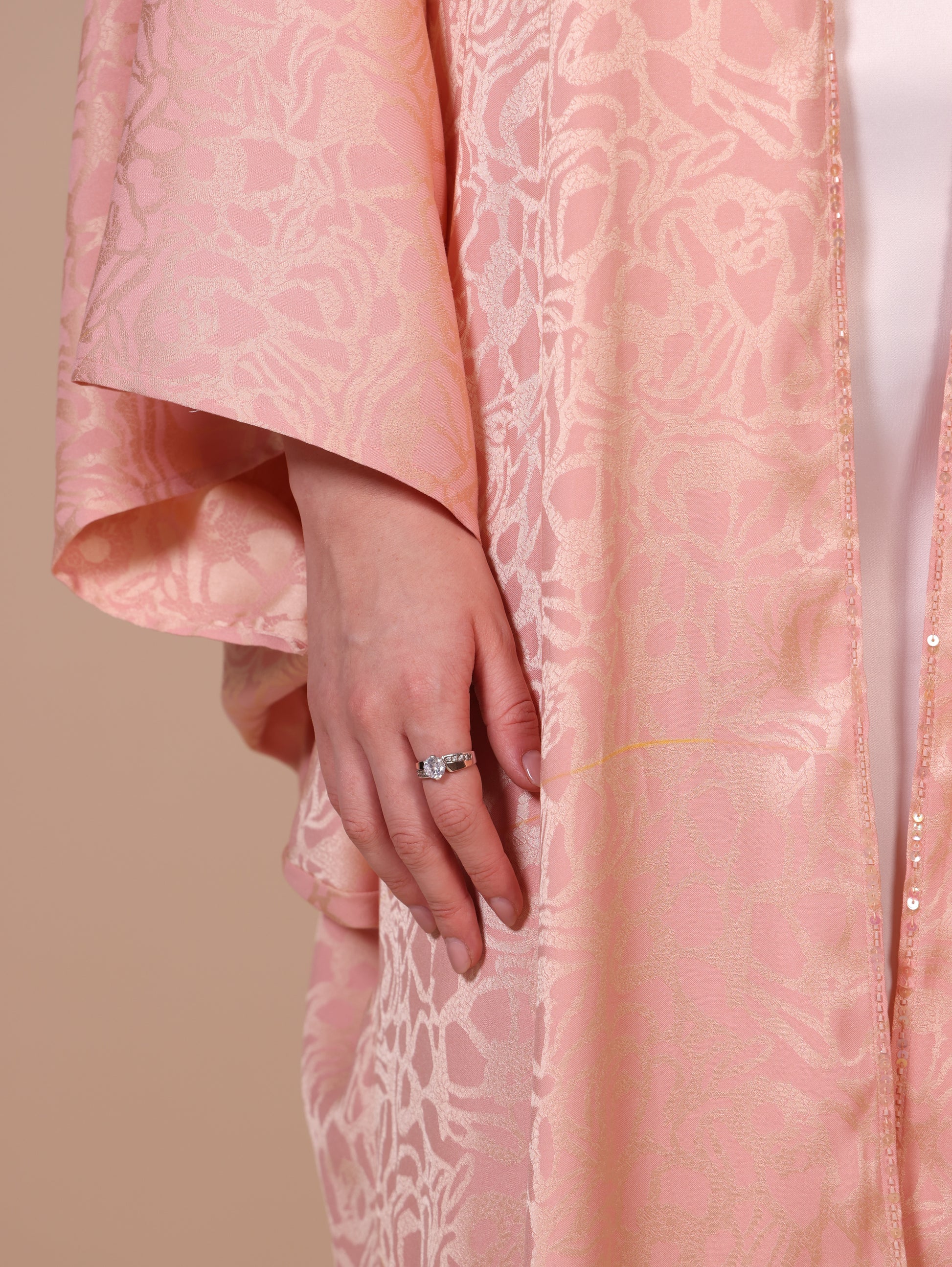 Jacquard satin Abbaya hand embellished details, length 61inches
