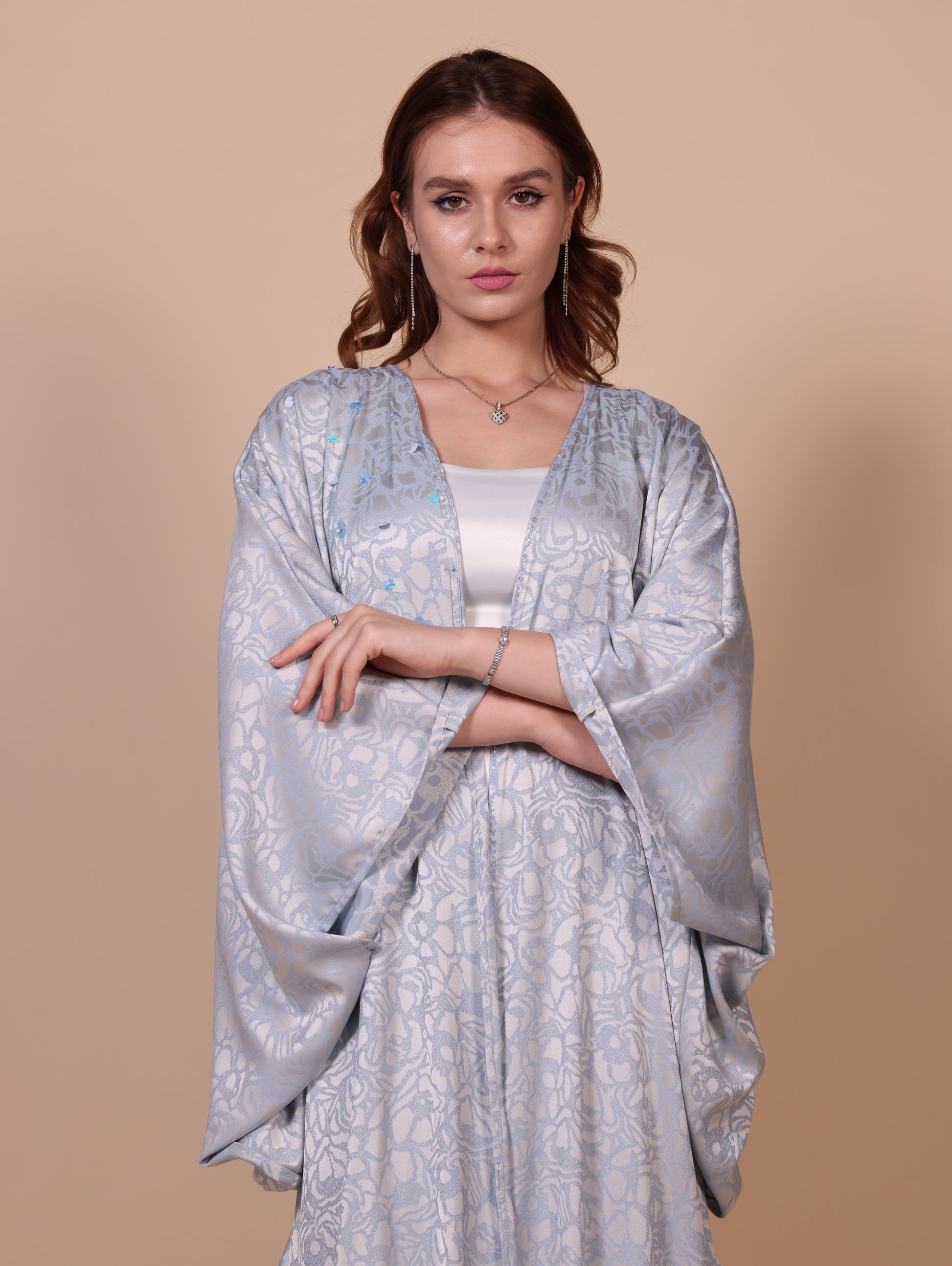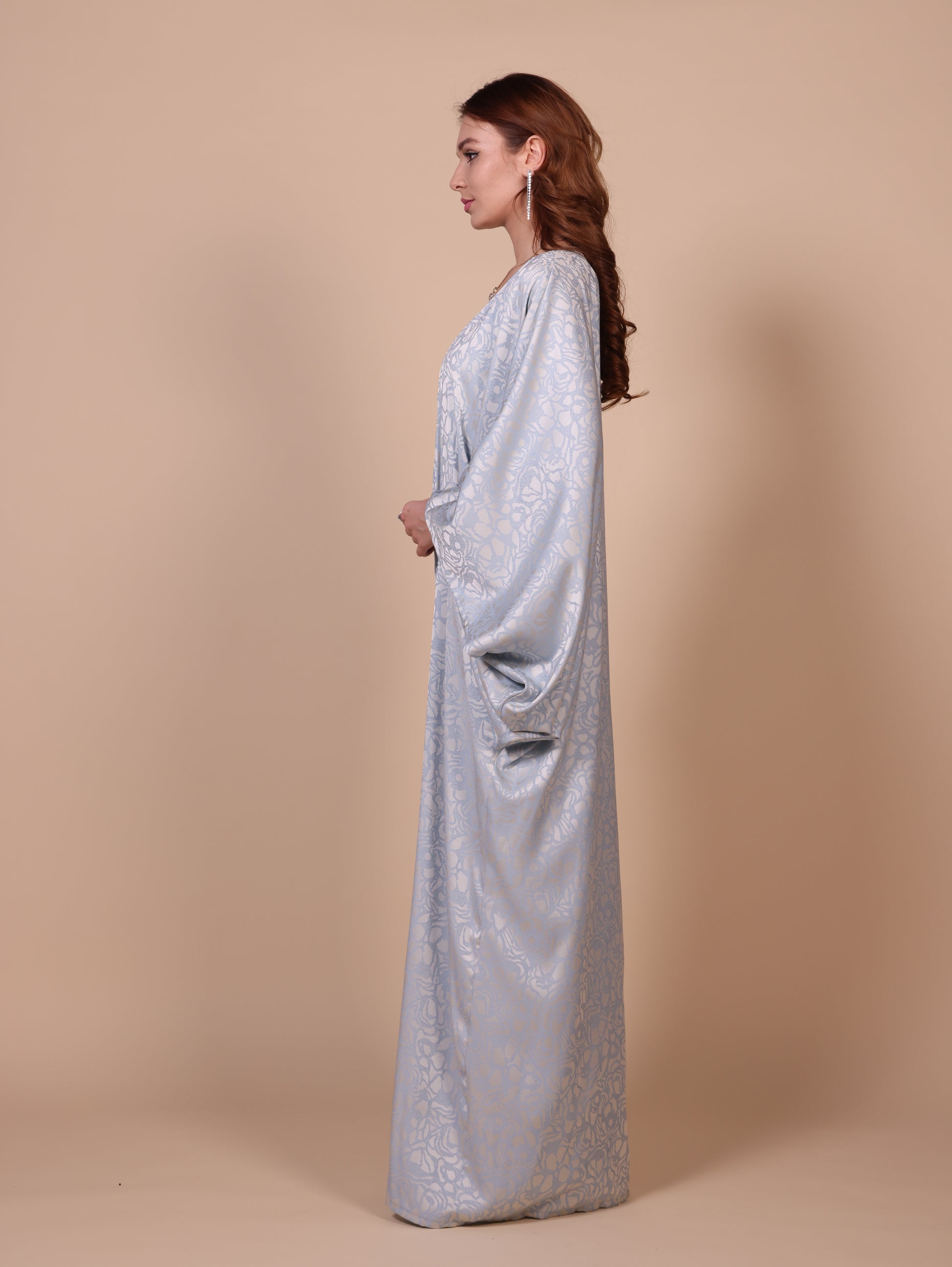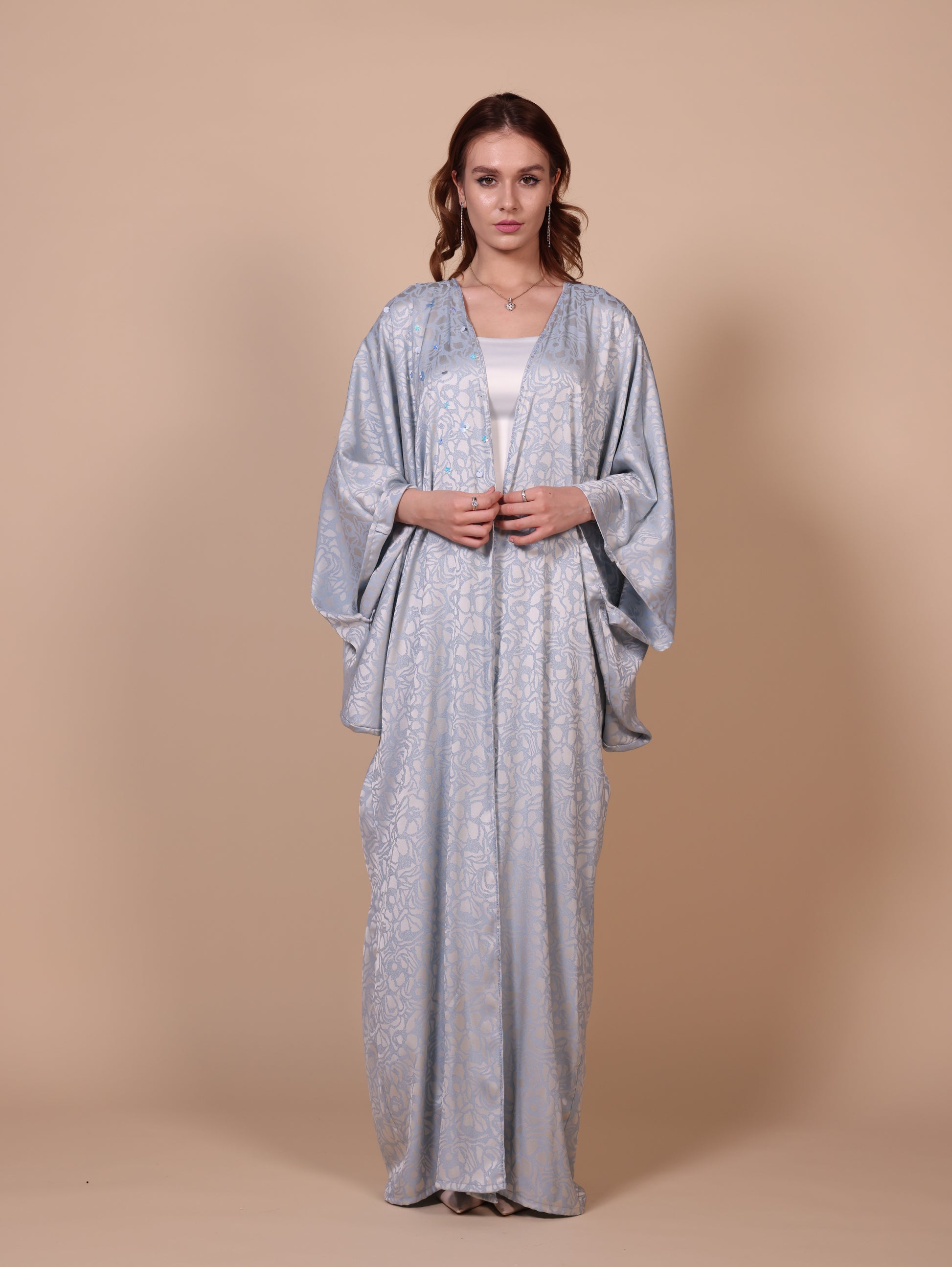 Jacquard Satin Abbaya with hand embellishment details, length 61inches