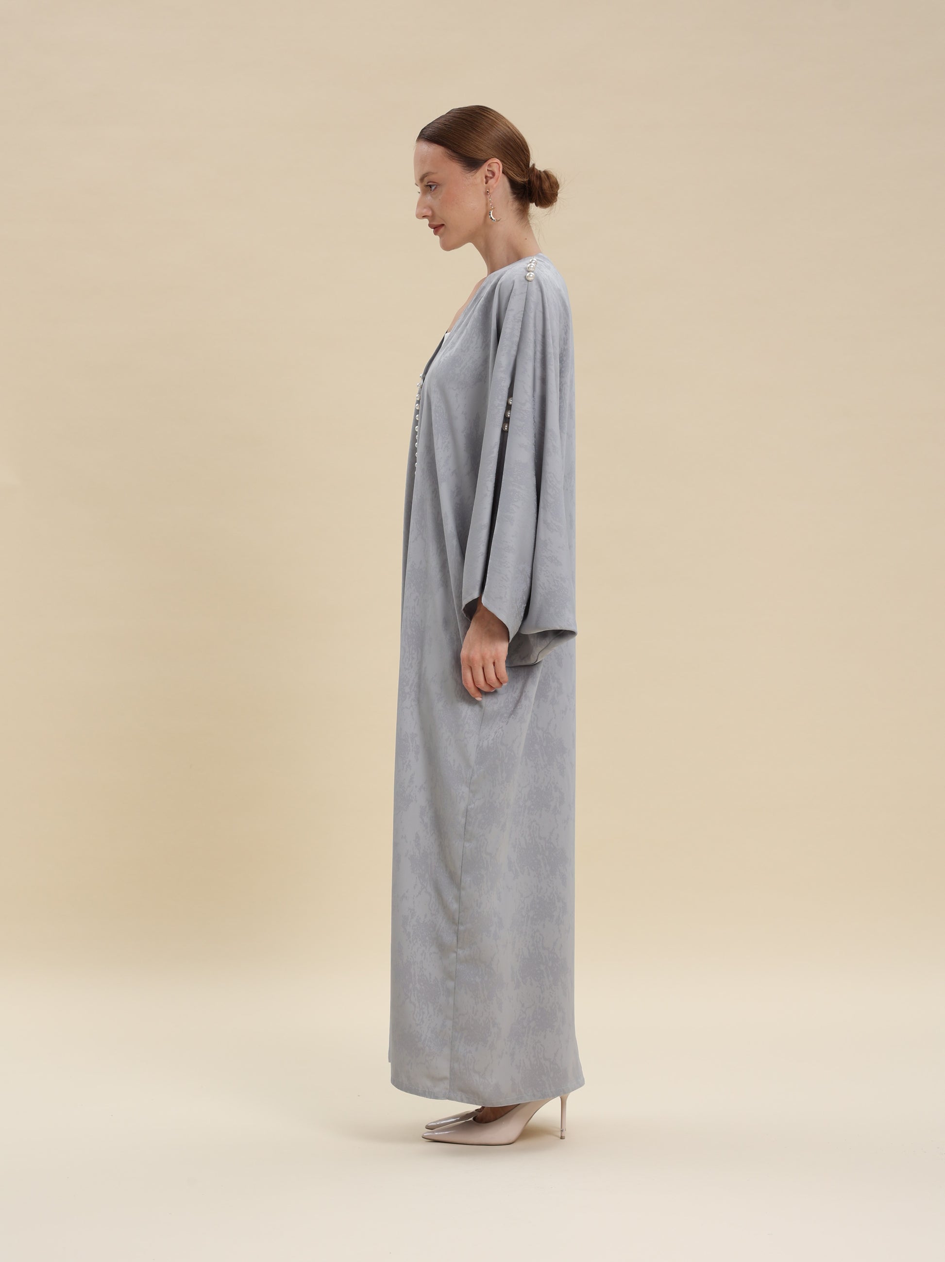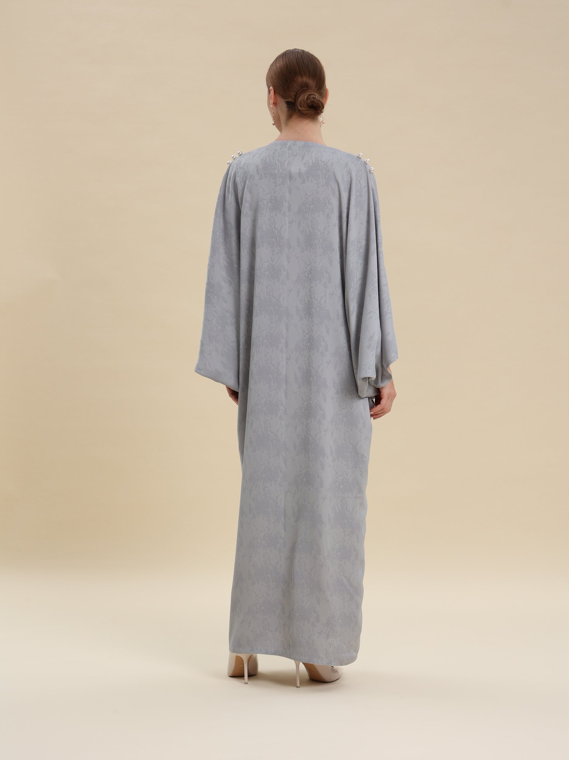 GRAY BROCKET ABAYA WITH PEARL ABAYA ONE SIZE