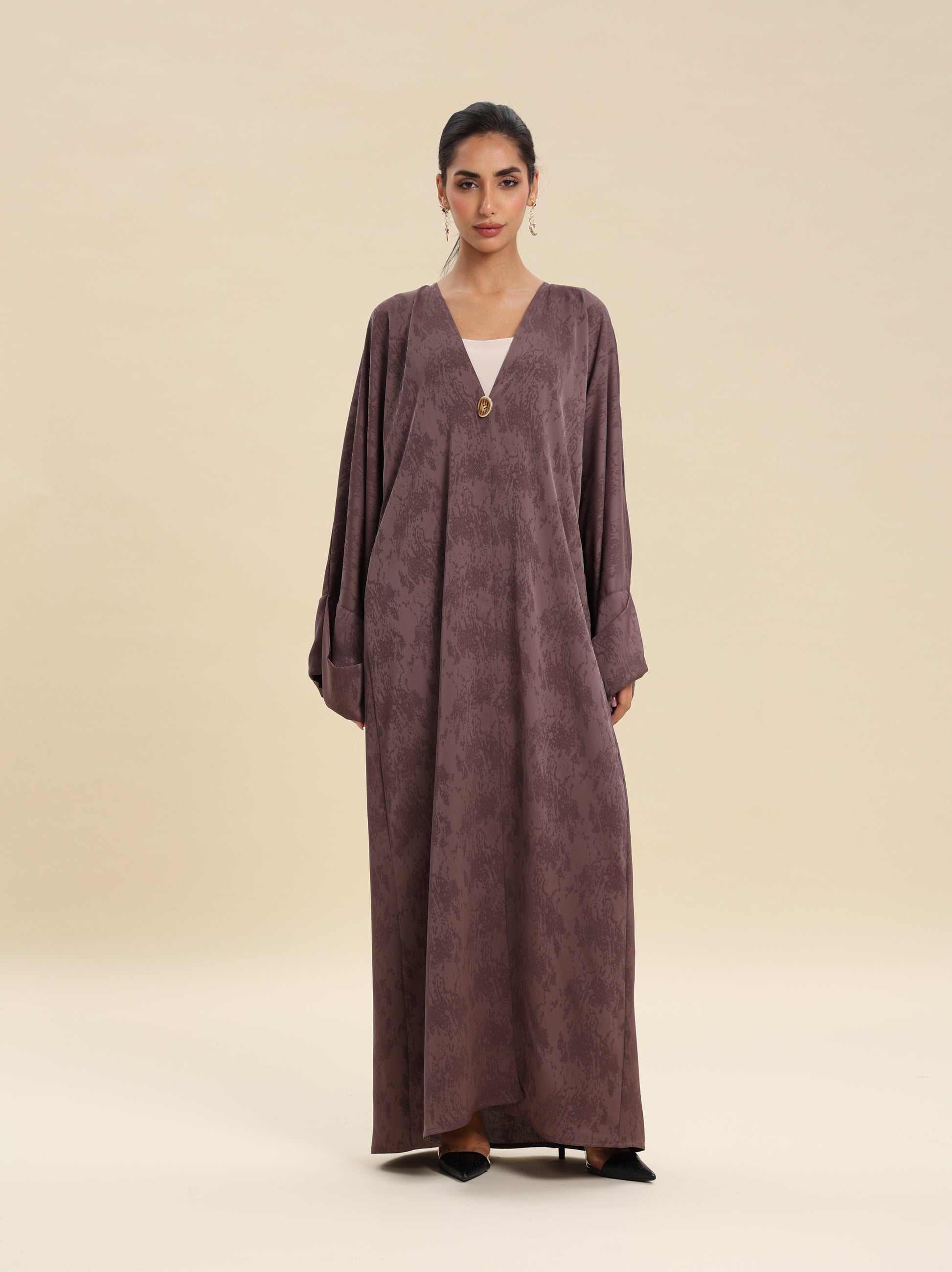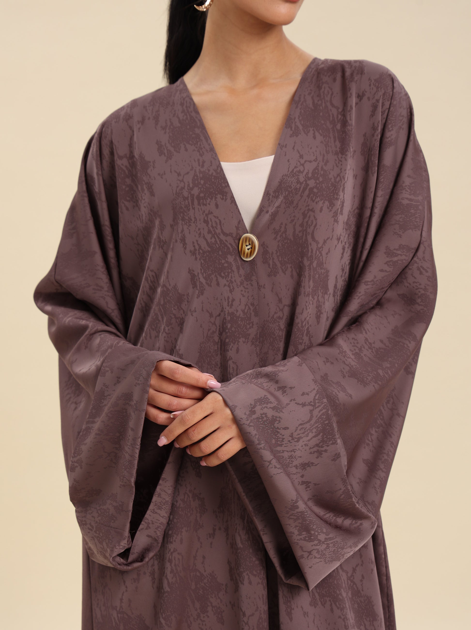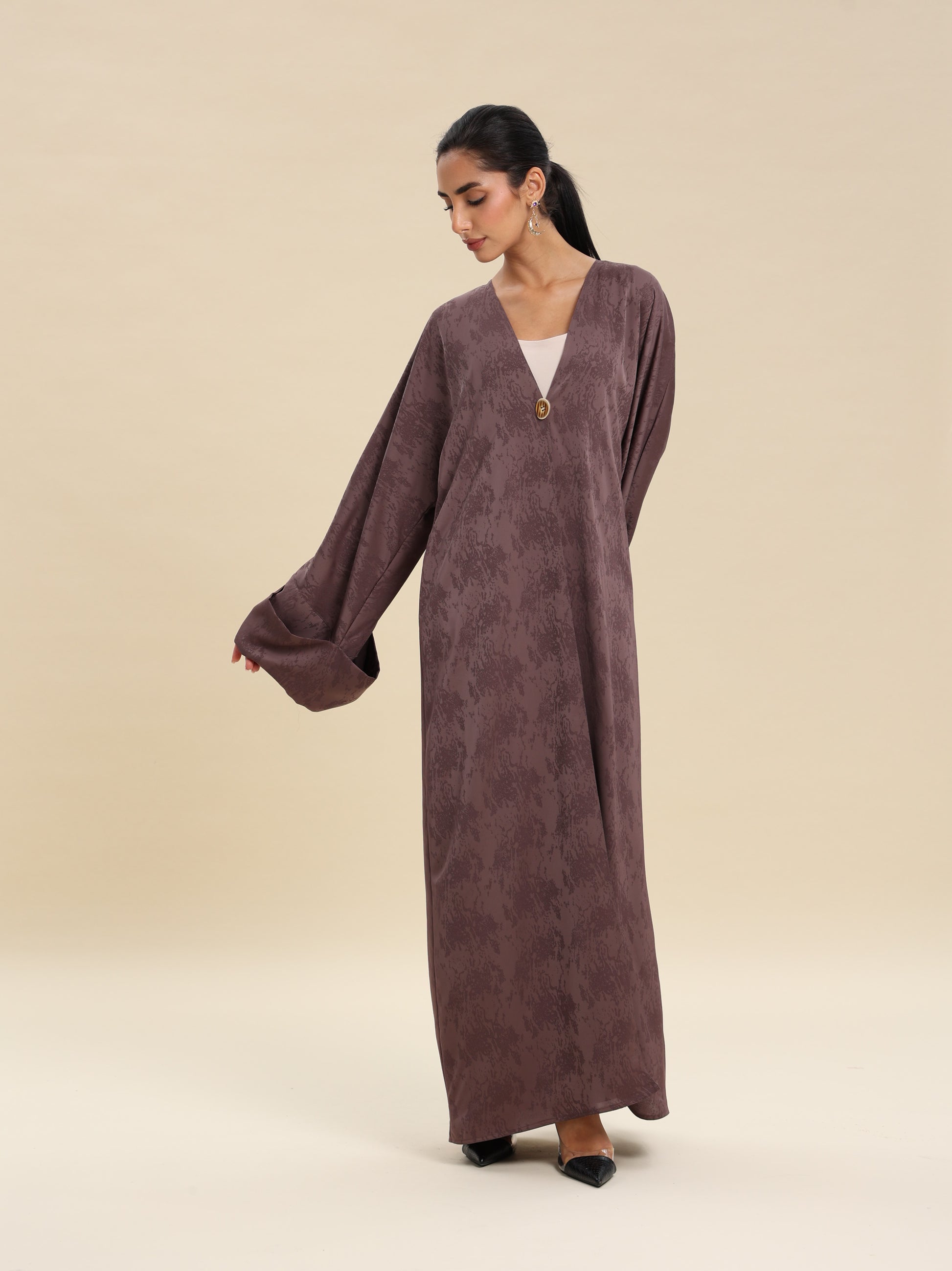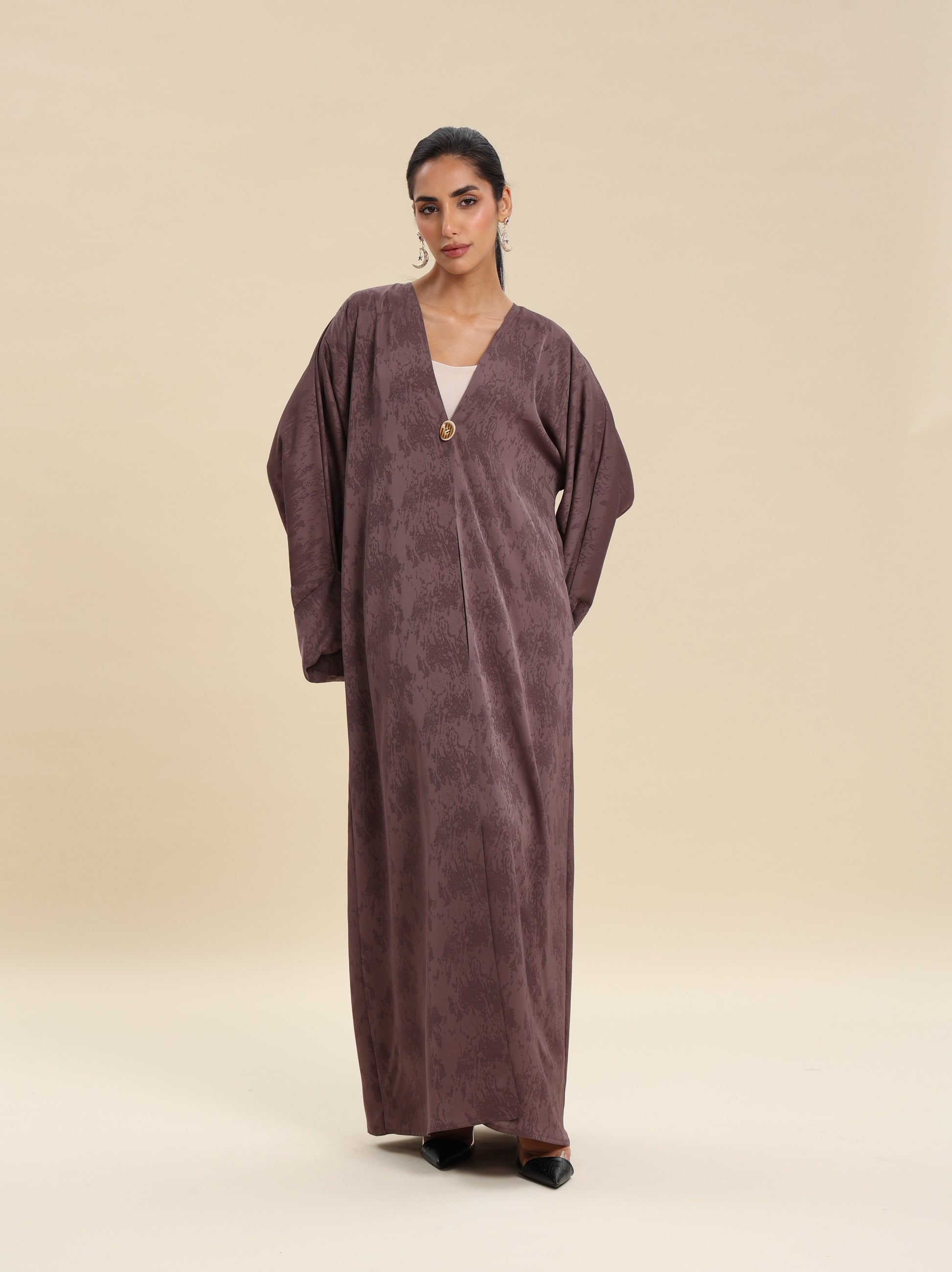 JAQUARD COFFE ABAYA , BUTTON DETAILS