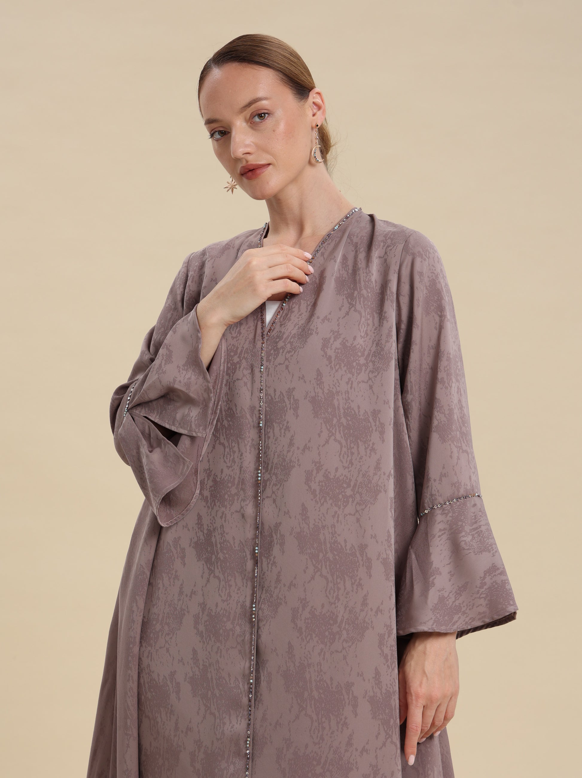 LIGHT COFFE JAQUARD FLARE ABAYA