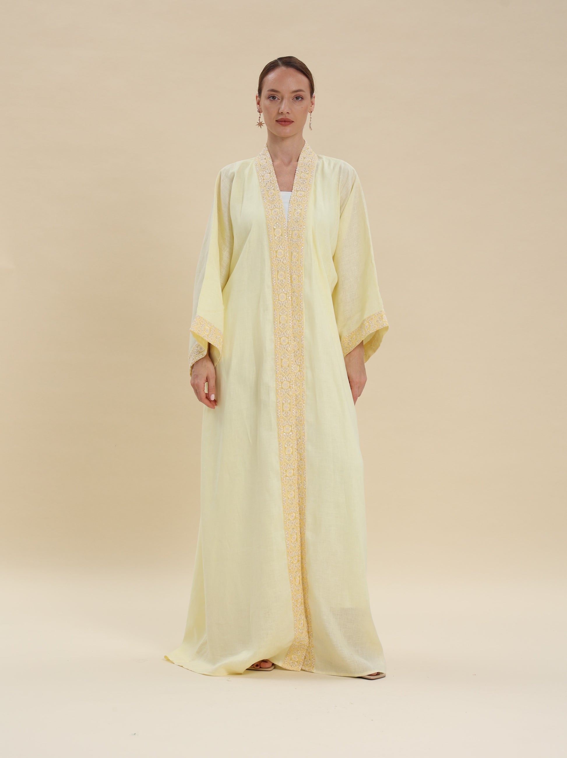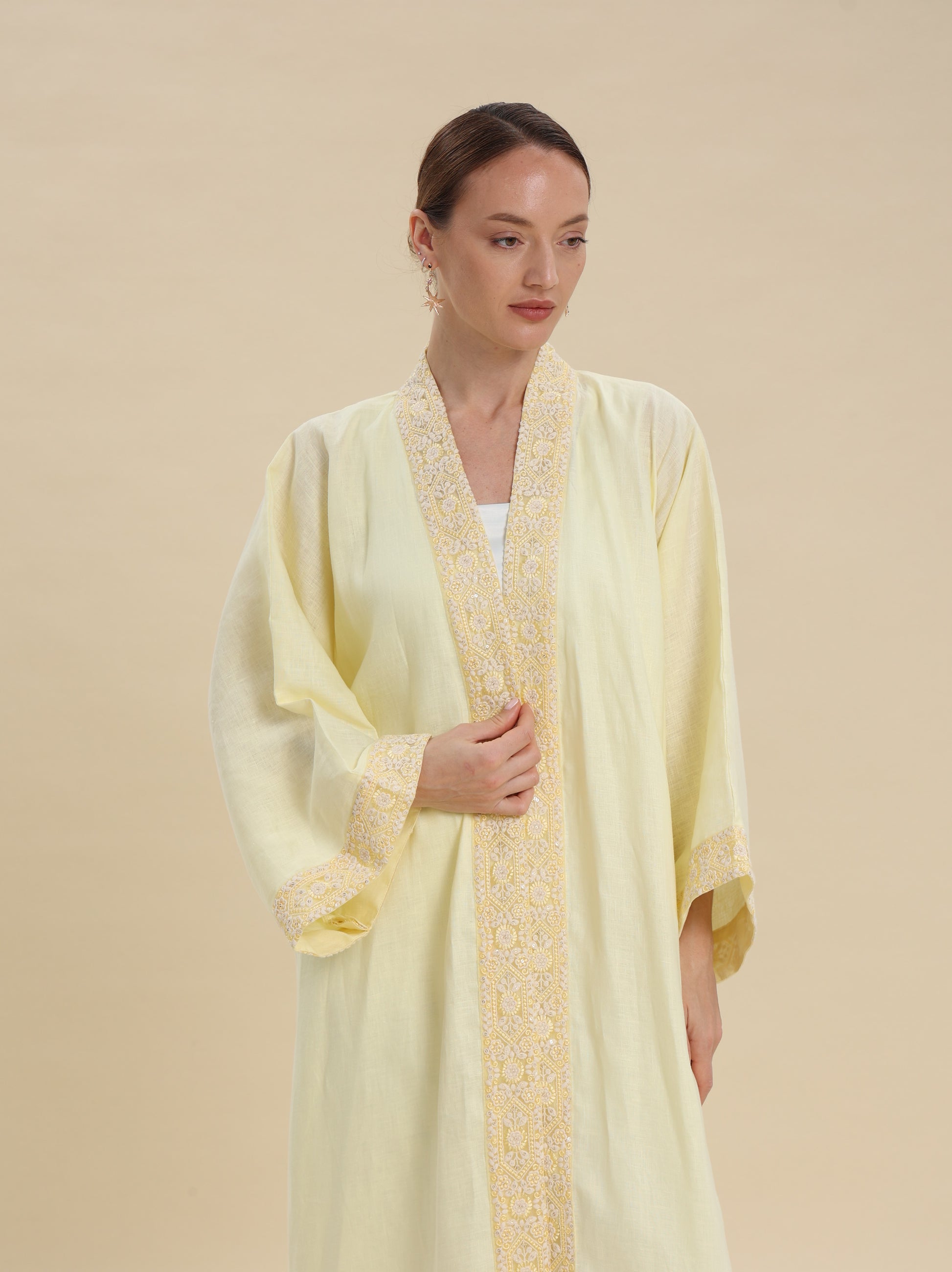 LINNEN YELLOW ABBAYA WITH LACE DETAILS